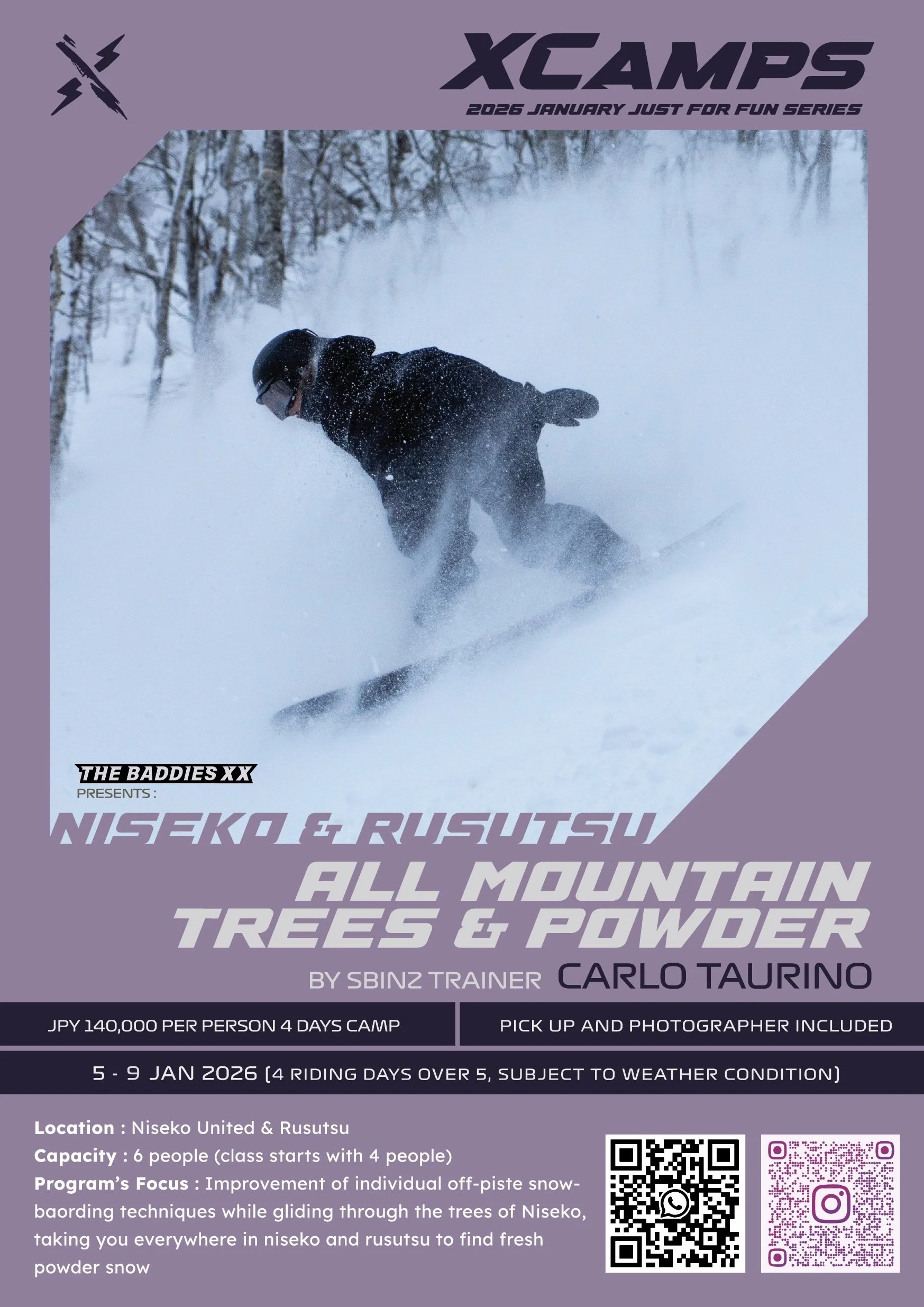 ❄️ Participant requirements: Considerable experience snowboarding off-piste or on powder, able to snowboard comfortably and confidently on any slope, off-piste and on powder.